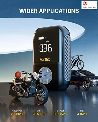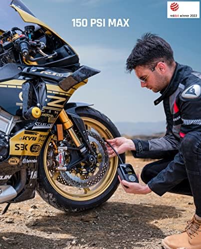 [Multi-function Fast Inflating] Features with the high-performance chip and 150psi high-pressure capacity, this powerful air compressor inflates fast, tires of size 10/70 R17 can be filled in just 38 seconds(28-35PSI). Perfect for inflating motorcycles, bikes, cars, balls, swim rings and other inflatables.