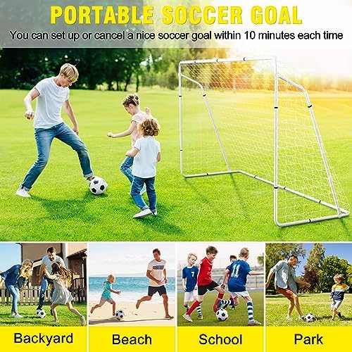 PORTABLE SOCCER GOALS: Our soccer goals for backyard is designed for easy transportation and storage. It is lightweight but sturdy. The detachable frame can easily transport large soccer goals to backyards, parks, beaches, grasslands, soccer fields, communities, school playgrounds, and other indoor and outdoor activities. Enjoy soccer with family and friends anytime, anywhere.