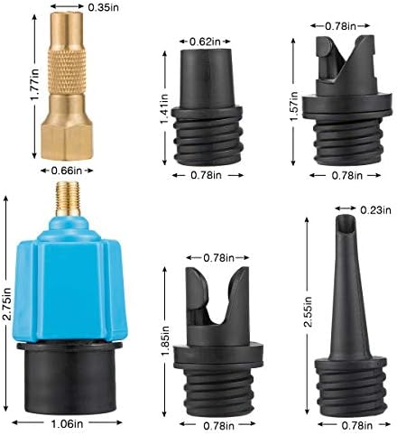 Broad applicability: our air valve adapter set includes 4 different air nozzle converters. Round head nozzle fits inflatable beds, pools and boats. Sharp head nozzle fits swim rings and pool floats. Square head nozzle fits SUPs and dinghies. Spiral head nozzle fits kayaks and canoes.
